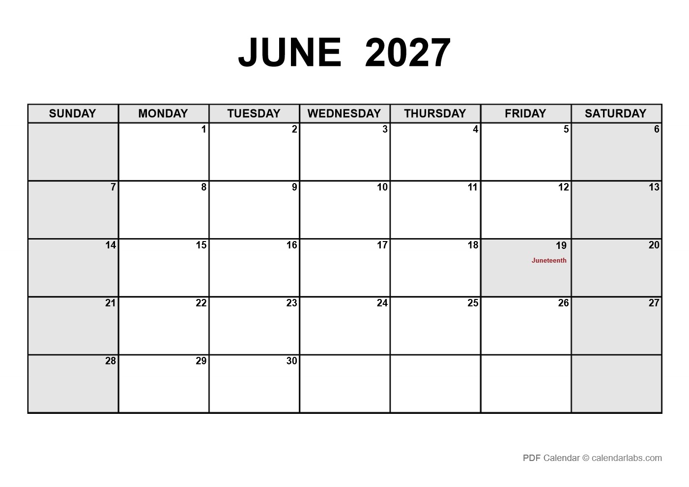 June 2027 PDF Calendar