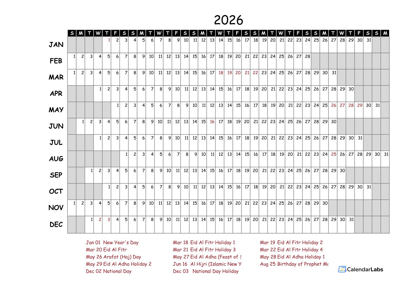 2026 YEARLY PROJECT TIMELINE CALENDAR UAE