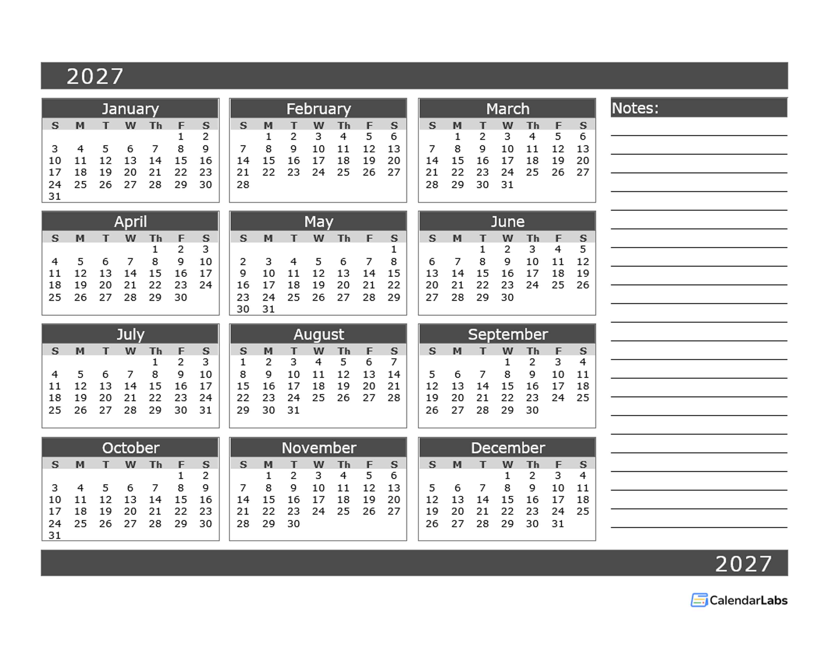 You might like these 2027 Word / PDF / JPG calendar templates: