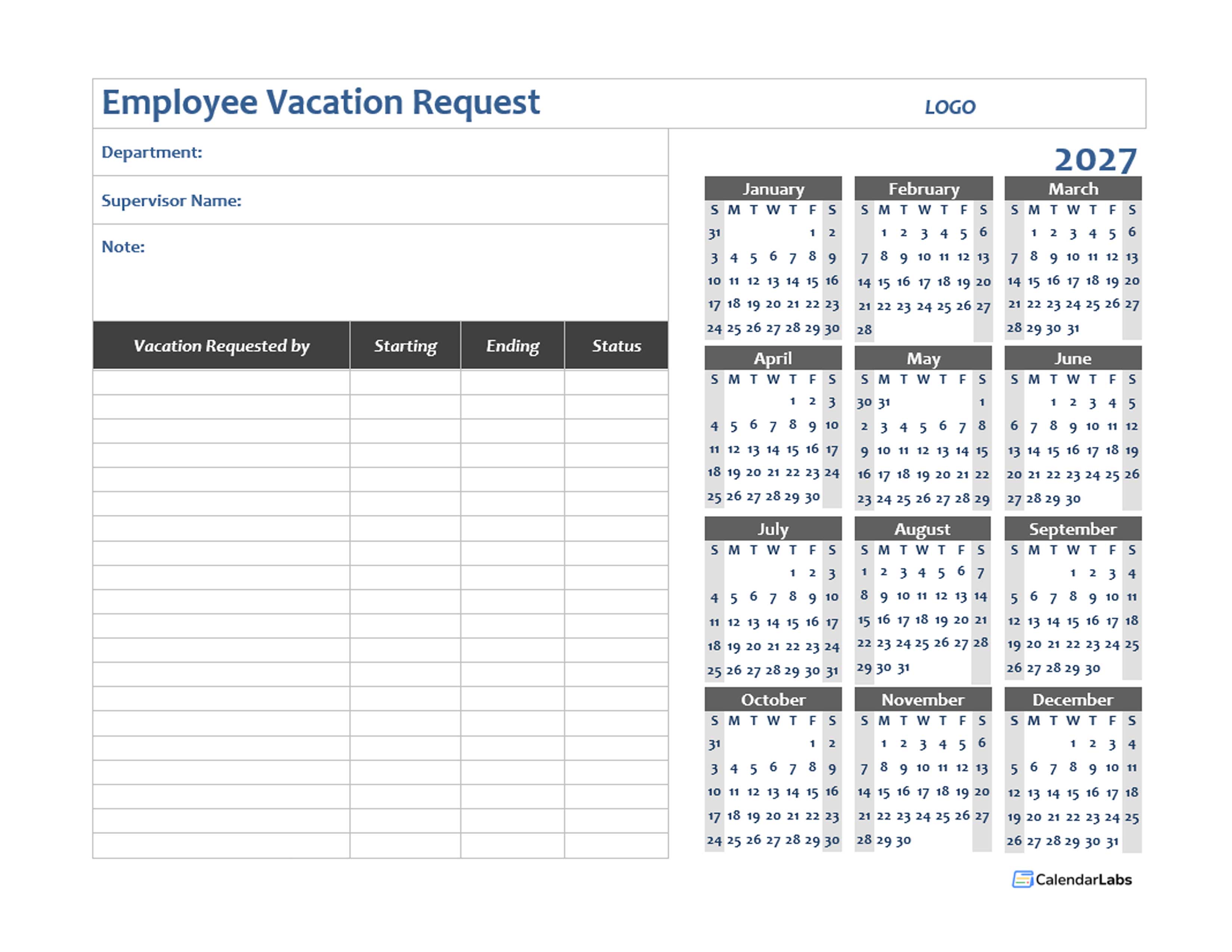 2027 BUSINESS EMPLOYEE VACATION REQUEST