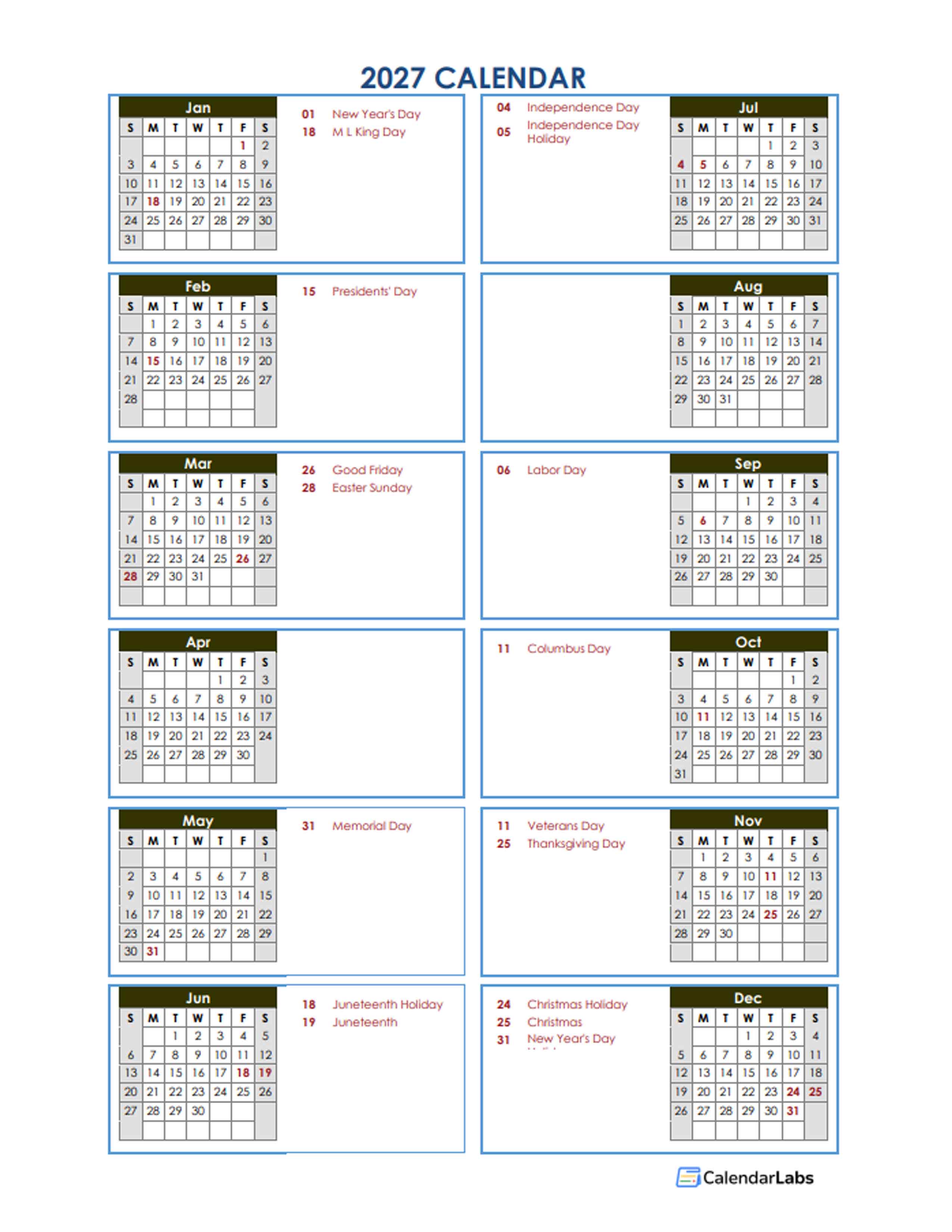 2027 YEAR AT A GLANCE WORD CALENDAR TEMPLATE