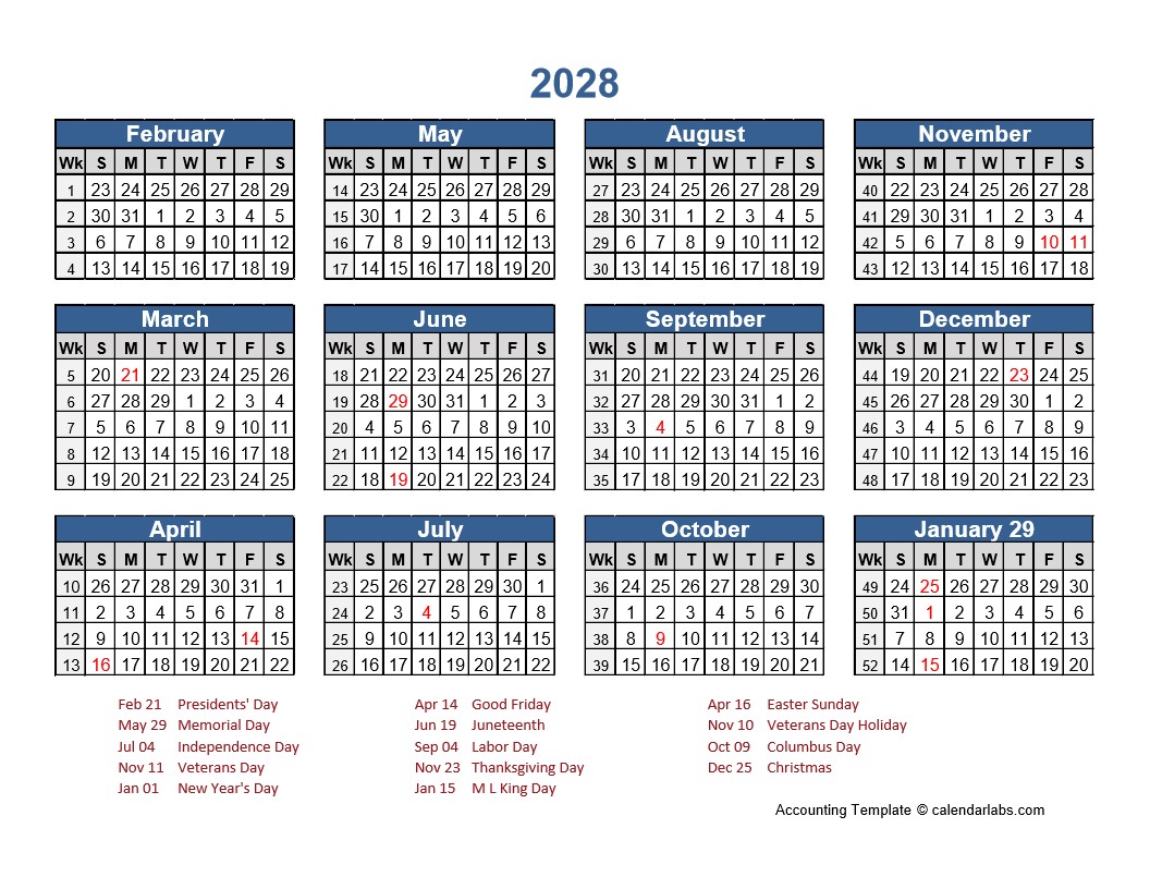 2028 RETAIL ACCOUNTING CALENDAR 4-4-5